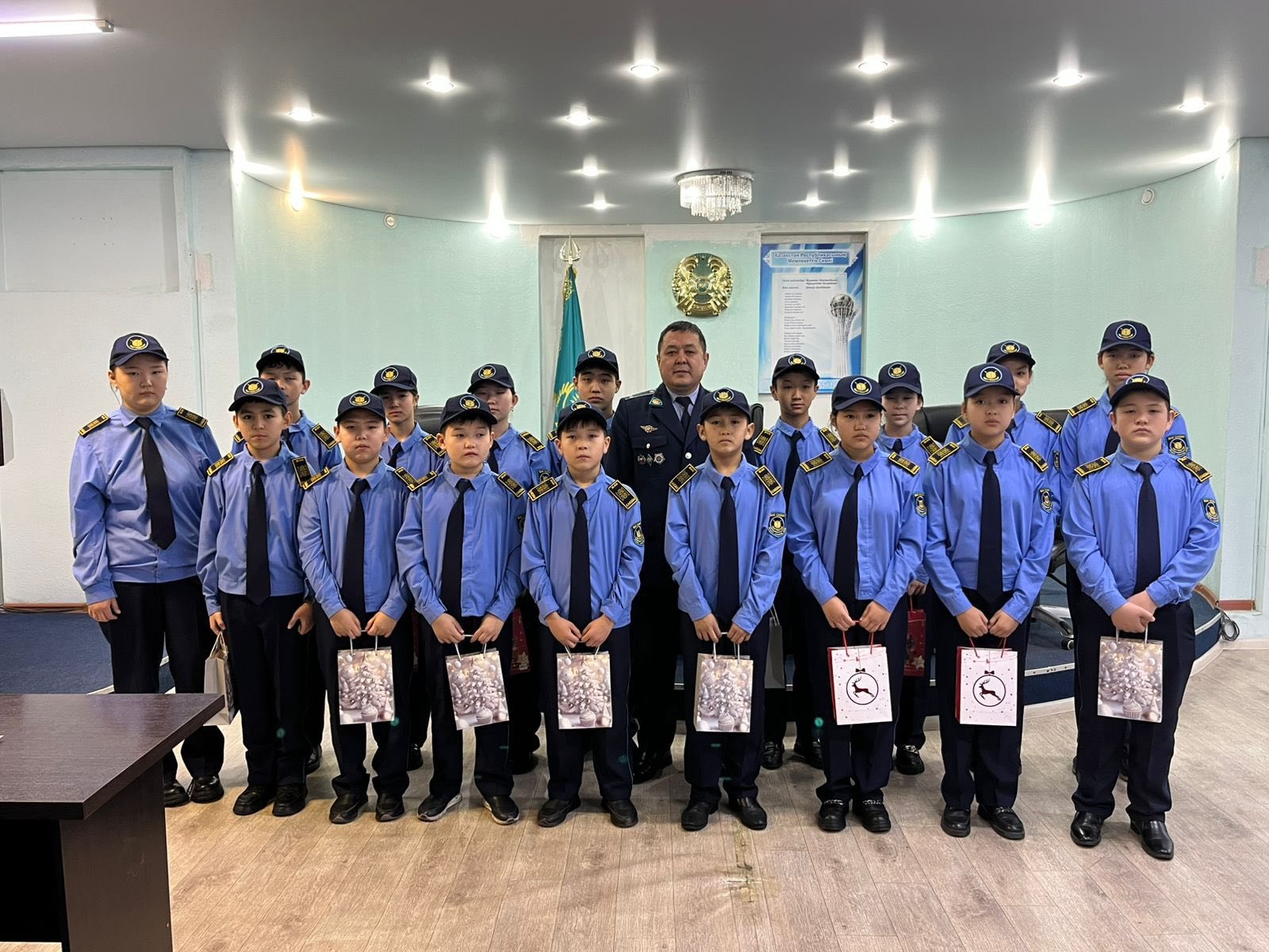 Жаңа жыл мерекесіне орай «Жас сақшы» сыныбының оқушыларына арналған мерекелік іс-шара ұйымдастырылды. Аудандық ішкі істер бөлімінің басшысы, подполковник Еслямбек Ерлік Жанұзақұлы оқушыларды келе жатқан Жаңа жыл мерекесімен құттықтап, ізгі тілектерін білдірді.Сондай-ақ Жаңа жыл қарсаңында мектеп директоры Мұхамедин С.К. және сынып жетекшісі Сыздықова Д.М. оқушыларға арнайы дайындалған сыйлықтарды табыстап, білім алуда табысты болып, тәртіп пен жауапкершілікті жоғары деңгейде сақтауларына тілектестік білдірді.Өскелең ұрпаққа көрсеткен қолдауы мен қамқорлығы үшін аудандық ішкі істер бөліміне зор алғысымызды білдіреміз.
