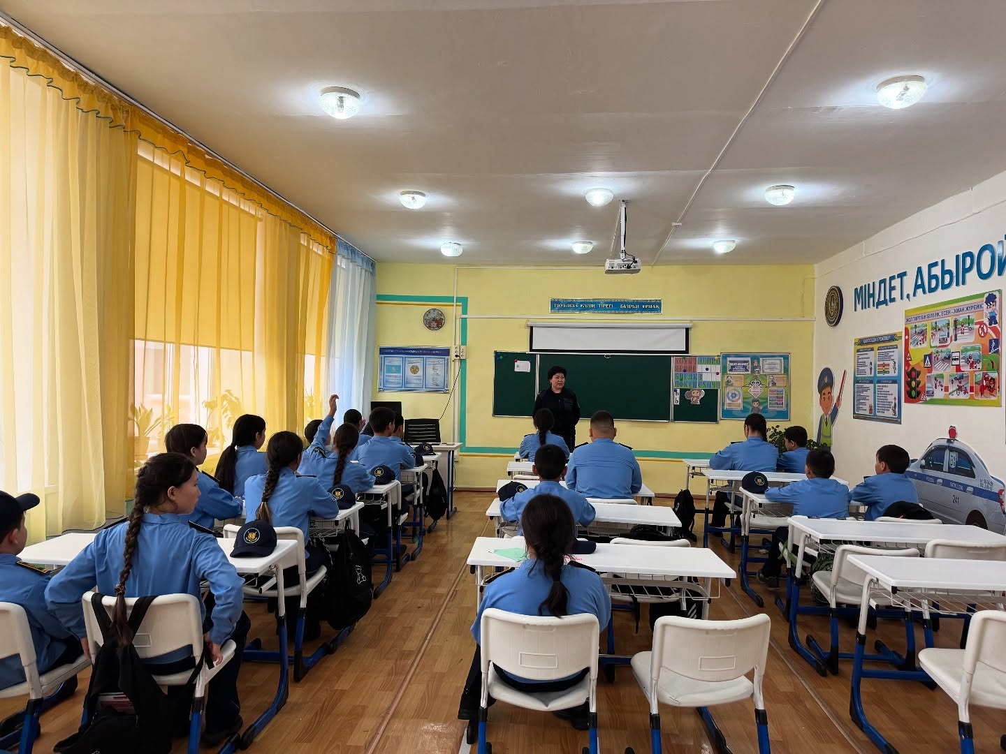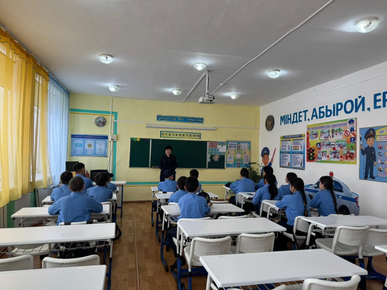 Сабақты Шал ақын ауданының полиция бөлімінің майоры Енсегенова Жібек Жұмабекқызы өткізді.